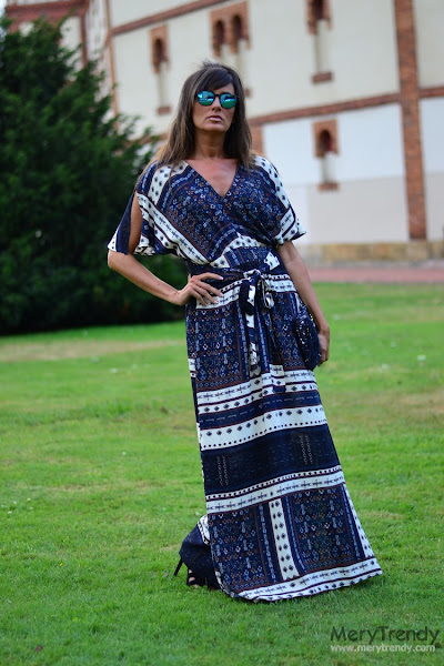 Poco a poco, el verano se va acabando... los días son más cortos... empieza la "vuelta al cole"... y nos gusta vestirnos con colores más oscuros. Sin embargo, las temperaturas aún son elevadas como para enfundarnos en looks "de temporada" pese a que ya nos apetezca estrenar la ropita nueva que hemos comprado. Por eso, el maxidress me parece una opción muy recomendable para la "etapa de transición".