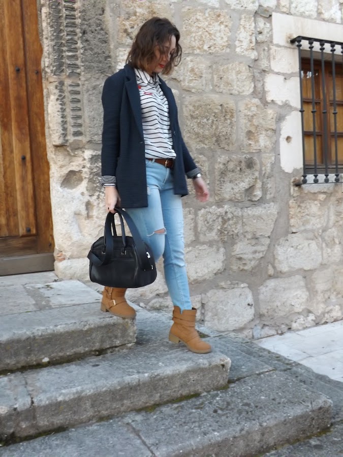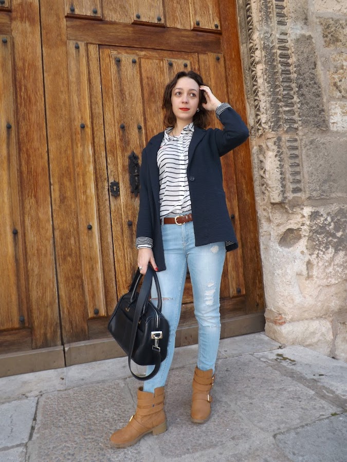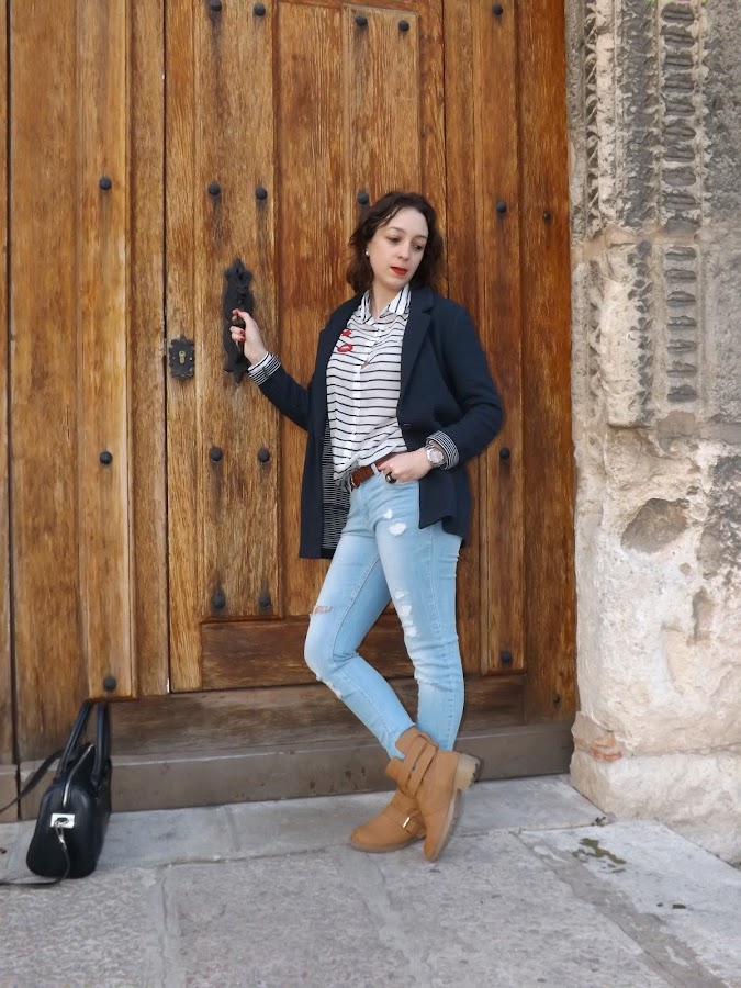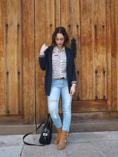 Me quedó un look sencillo y chic a la vez válido para un montón de situaciones. Jeans, camisa, blazer y botines, ¡para qué mas!