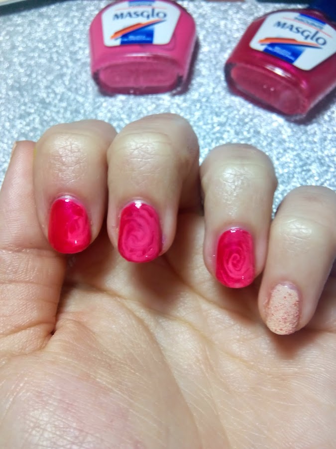 En este caso he utilizado dos de los esmaltes de la colecicón frenesí de Masglo: Positiva e Insolente. Esta es la última manicura realizada para poner a prueba los esmaltes por lo que en poco tiempo (