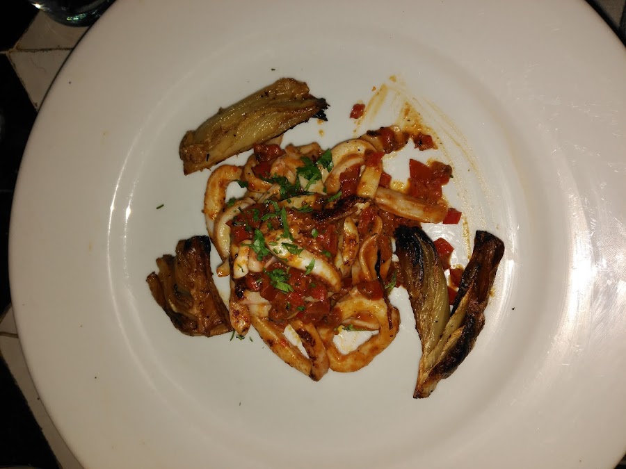 Mi chico pidió pollo al limón y yo calamares y estaba todo declicioso. A los postres no les hicimos foto pero estaban espectaculares. Pedimos tarta de chocolate y helado de chocolate picante con pistacho.