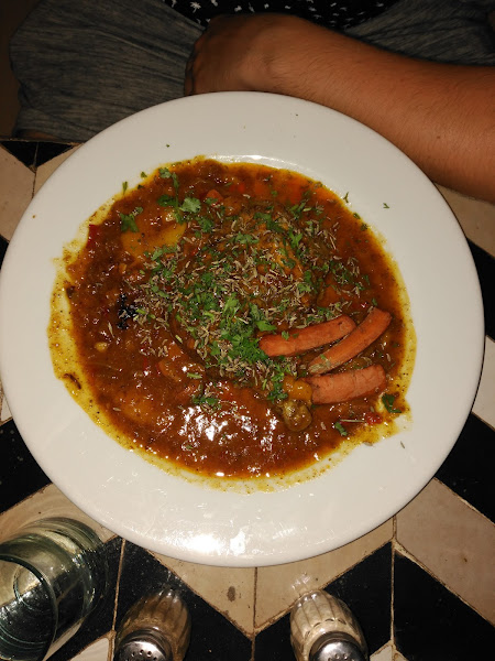 Después de una merecida ducha y descanso nos arreglamos y fuimos a cenar a Nomad (totalmente recomendable). El interior es chulísimo y la terraza es impresionante, muy europeizada dentro del bullicio del zoco.