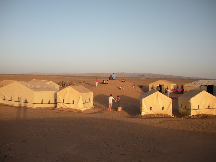 Ahora, os recomendaría la excursión: sí y no. Sí porque es una experiencia chulísima el paseo en camello, dormir en una haima, ver las estrellas en el desierto, hacer amistad con la gente del microbús mezclando idiomas... Y no porque es una paliza de viaje. Nos dijeron que se tardaba unas cinco horas pero al final fueron nueve. En el campamento no había duchas y la verdad es que se necesitaban.