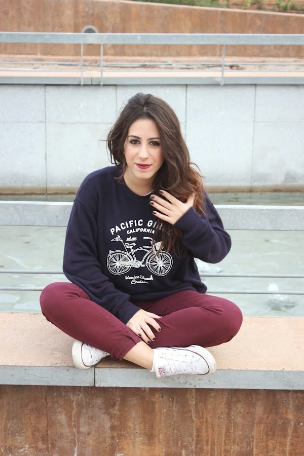 La he combinado con unos pantalones de color marsala, que sin duda es el color estrella este otoño, y una de mis tendencias favoritas.