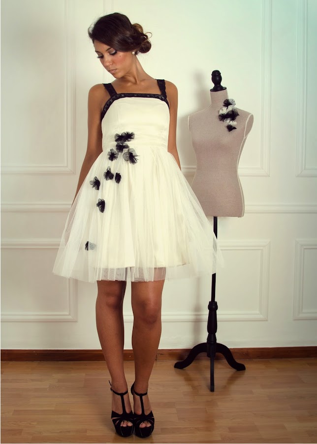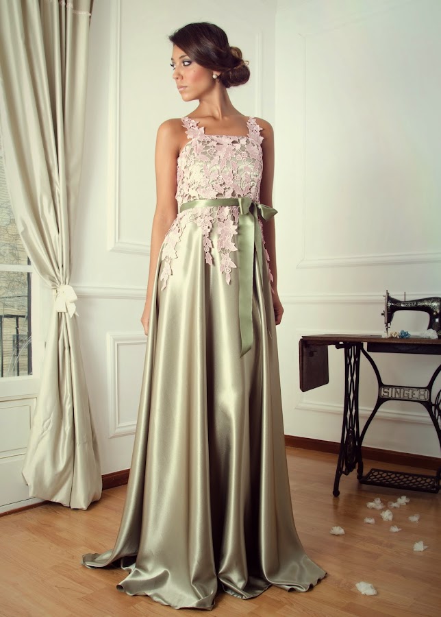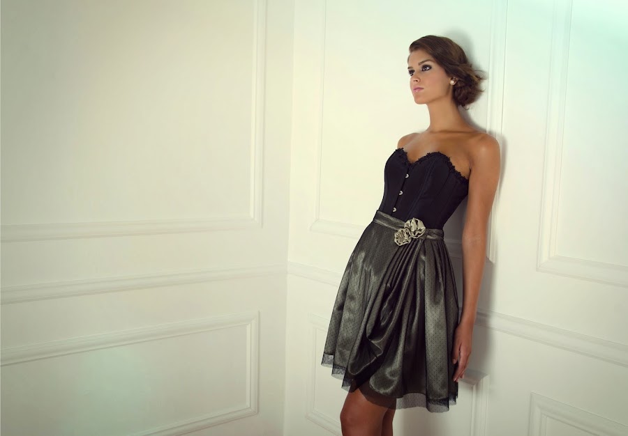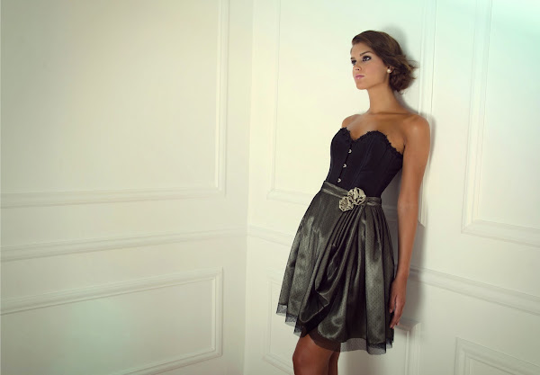 En cuanto a la paleta de colores destacan el crudo, gris perla,estampados florales en blanco y negro, rosas, champán, verdes, azules turquesa, que se combinan creando vestidos largos y cortos de fiesta, corsés , tops vestidos corsés