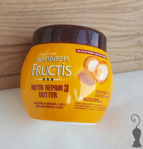 Hoy os voy a hablar de una mascarilla capilar de Fructis de Garnier, en concreto su nueva Nutri Repair 3 Butter. Esta mascarilla está indicada para cabellos muy secos y dañados sin engrasar el cabello.