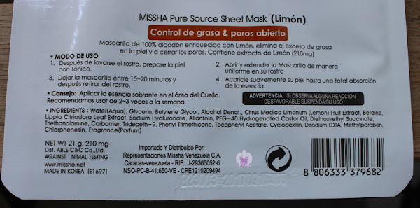 Estas tres últimas semanas he estado usando, una vez por semana, estas tres mascarillas de la marca de cosmética coreana Missha, de dos tipos diferentes: dos purificantes con jugo de limón y una revitalizante con extracto de algas marinas. Me encantan las mascarillas de todo tipo, las peel-off, las de barro, las cremosas y sobre todo estas, las de gasa y es por una sencilla razón, son las únicas que no hay que retirar, si no, que con la propia mascarilla ya no me hace falta ni ponerme crema encima de ella (al menos para ti tipo de piel con esto es suficiente).