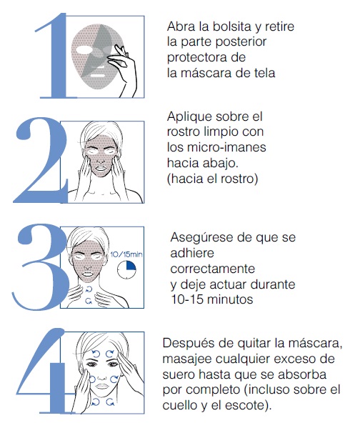 Es una mascarilla desechable de efecto rápido, actuando tan solo en 10-15 minutos.