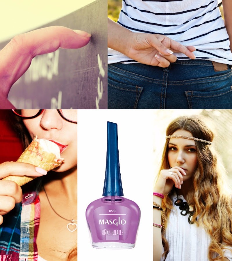 Para unas uñas sanas y fuertes, aplica la base uñas fuertes de masglo sobre unas uñas limpias de toda grasa o residuo, sosteniendo el pincel en un angulo de 45 grados y pincelando más de tres veces sin olvidar sellar el borde distal ( el borde externo de la uña ). Deja secar un minuto y prosigue con el esmaltado, que finalizaras con una capa generosa de brillo para prolongar la vida de tu esmaltado.