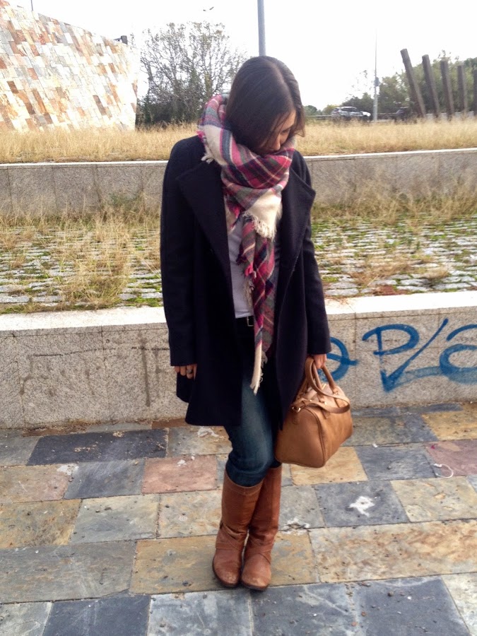 Good night babies! Today I show you a basic outfit that it"s perfect for the winter. The best option when you don"t know what to wear is jeans with a garment that gives a touch to the outfit, in this case, the maxi scarf that gives a touch of colour to the outfit. I wore it with jeans and brown boots and a blue coat. A warm and simply outfit, that you can wear a lot of days.
