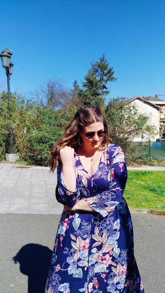 Ya con la primavera encima, y el tiempo comenzando a portarse bien, el sol saliendo e incluso a veces calentando un poco, ha dado pie a mi nueva obsesión, la cual os aseguro que vais a ver mucho. ¡Los vestidos largos! Me he pedido al menos 4 nuevos vestidos. Nunca he usado realmente maxi dresses, pero esta primavera, está claro que mi sangre está alterada por estas prendas. Cualquiera sea su diseño, lisos, con flores, rayas, cuadros... Como sea, me tienen enamorada. Y en esta ocasión se trata de un vestido de flores, en tono azul.
