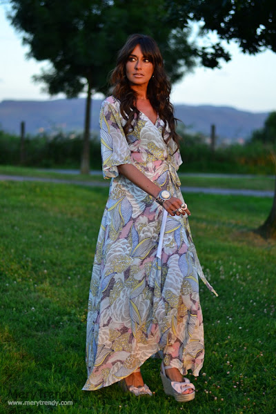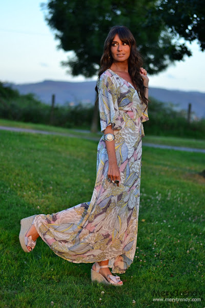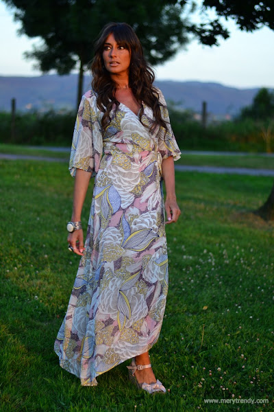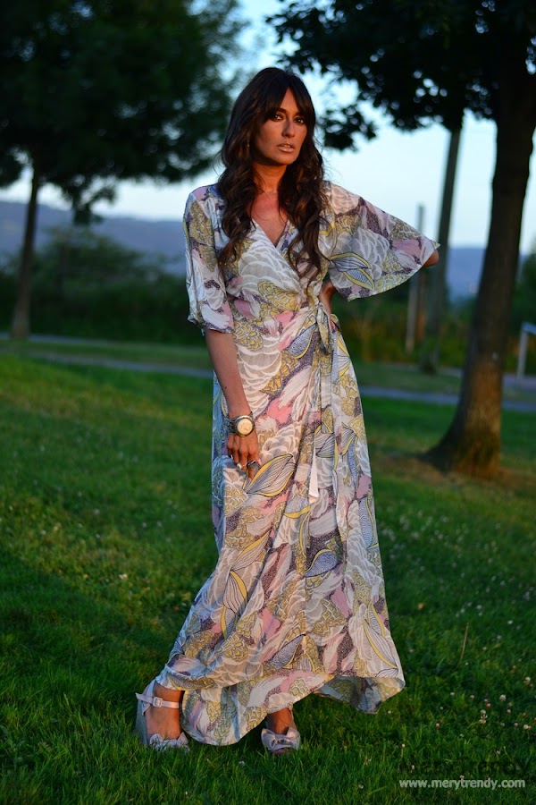 Hoy lunes vuelvo con las pilas bien cargadas y un montón de novedades a mi armario para aprovechar los días de verano que aún nos quedan en esta segunda quincena de Agosto, como este maxi dress cruzado de SheIn, tipo batita, escote en pico, media manga y estampado multicolor que os recordará a otro modelo de tejido más vaporoso, también de la misma casa que, igualmente saqué aquí en el blog tiempo atrás (si es que este tipo de prendas me chiflan... me parecen taaan cómodas gracias a su silueta holgada...).