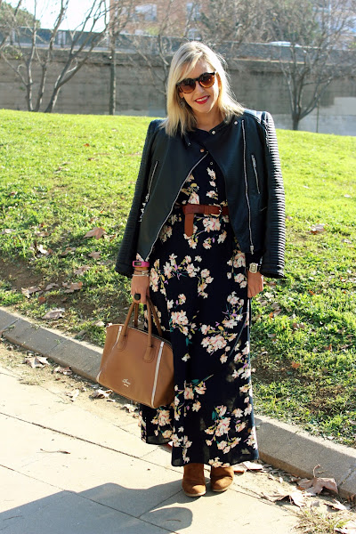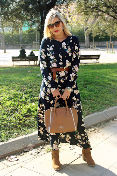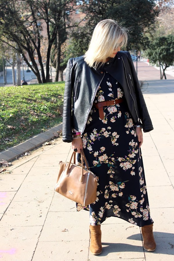 One of the trends of this season are the maxi-dresses. I would wanted to buy one, but I didnt see any that convinced me, but when I saw this one from Shein, I felt in love with it. I wear it with a black leather jacket and I add a belt to mark the waist. The accessories of the outfit were brown boots and a bag of Guess at the same colour that the boots.