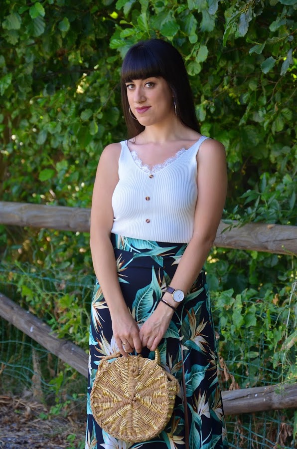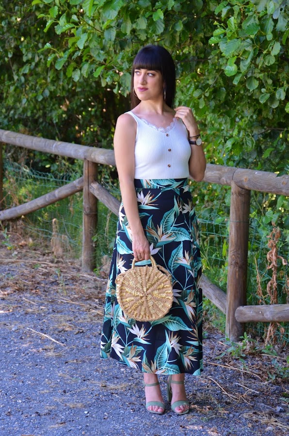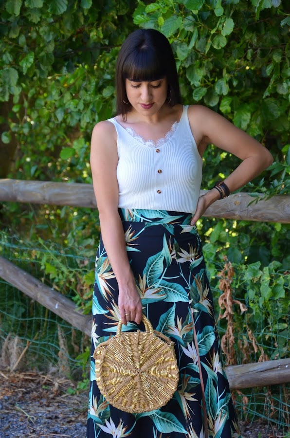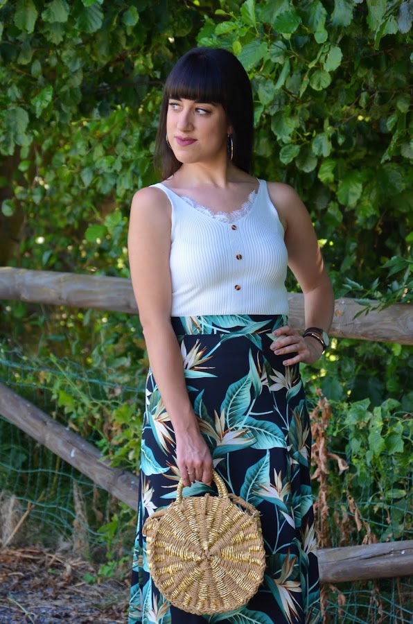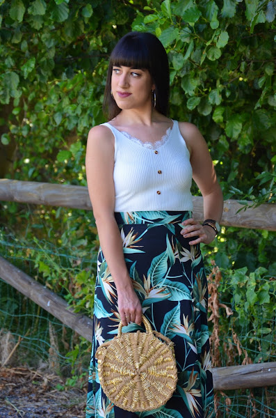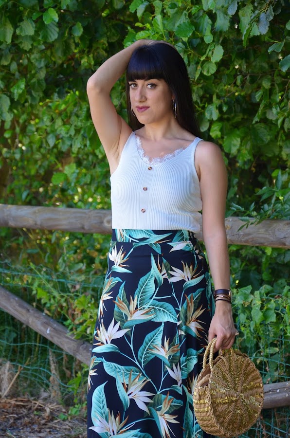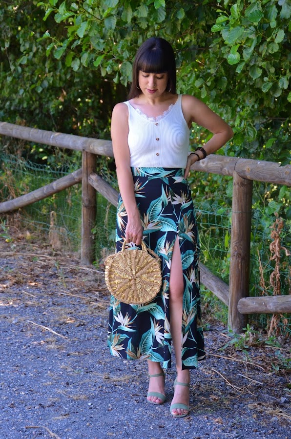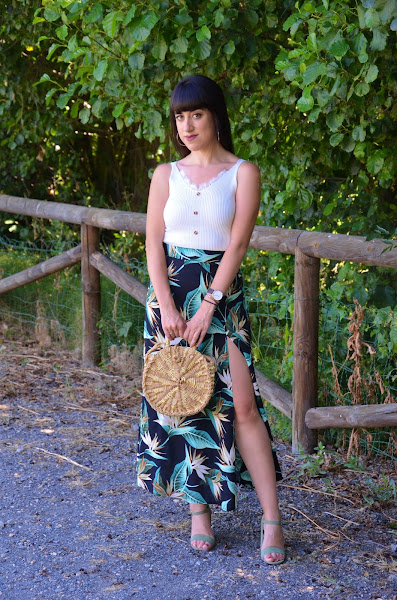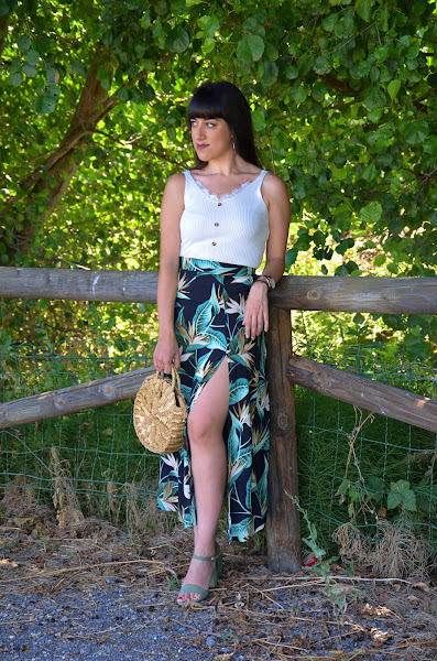 Hoy os traigo un nuevo look, este verano me he aficionado a las maxi faldas de colores vivos y con abertura en la parte fronta. Quedan tan bonitas y son tan femeninas... Esta de estampado tropical es de Shein y es una auténtica maravilla, a mi me tiene enamorada.