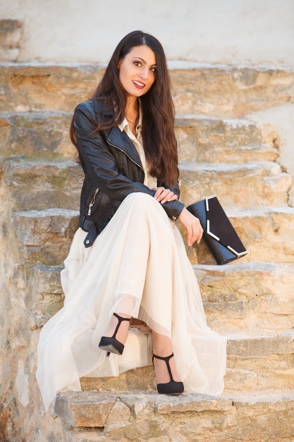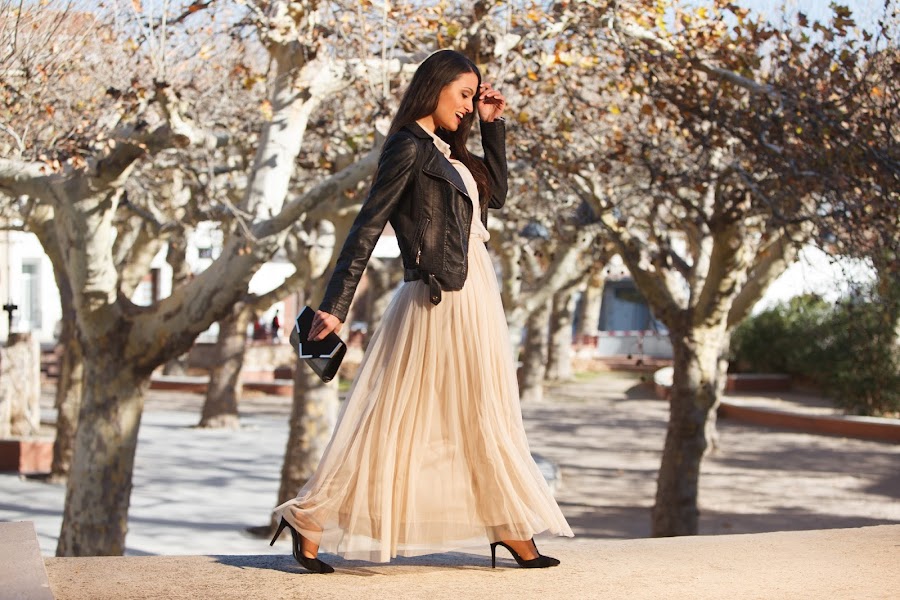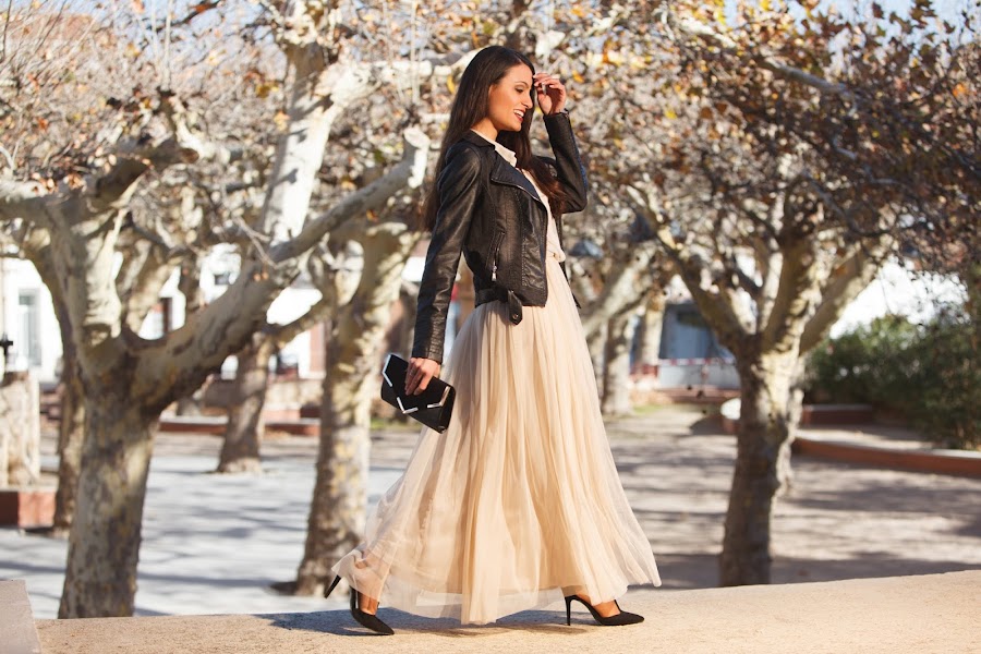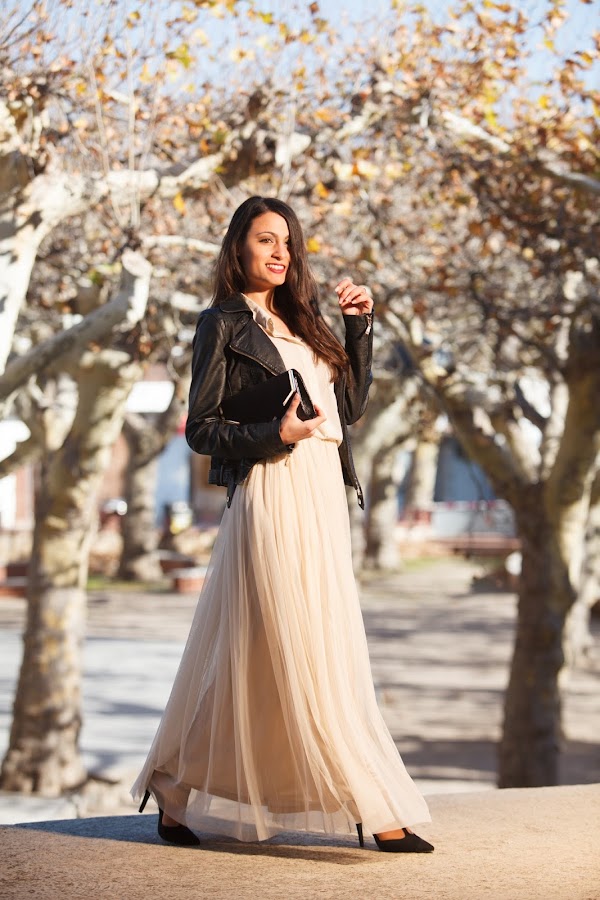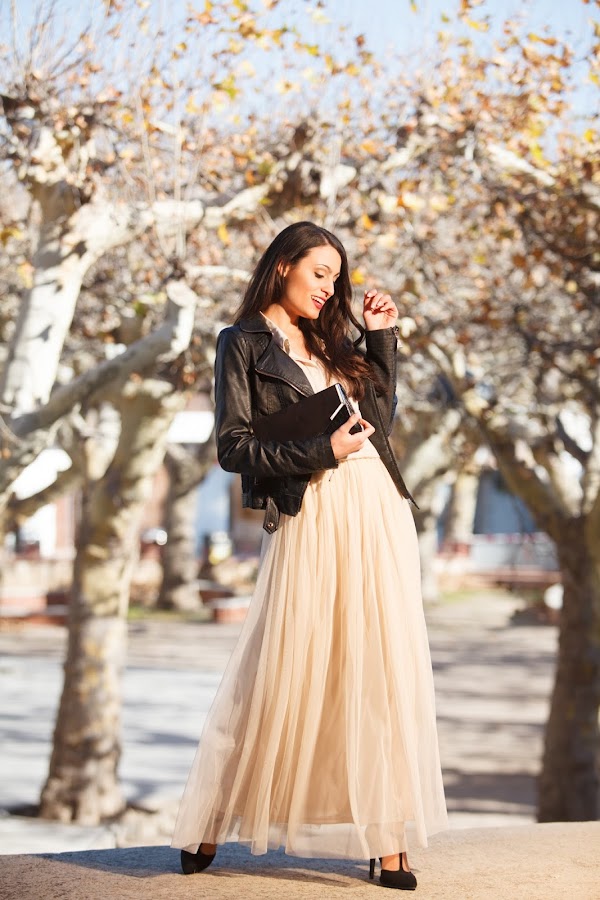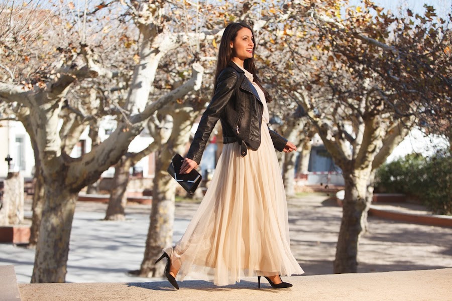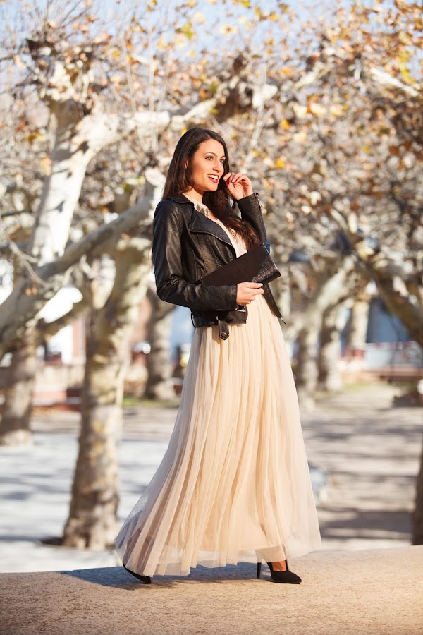 Hoy os dejo una nueva propuesta con mi nueva espectacular maxi falda de tul beige