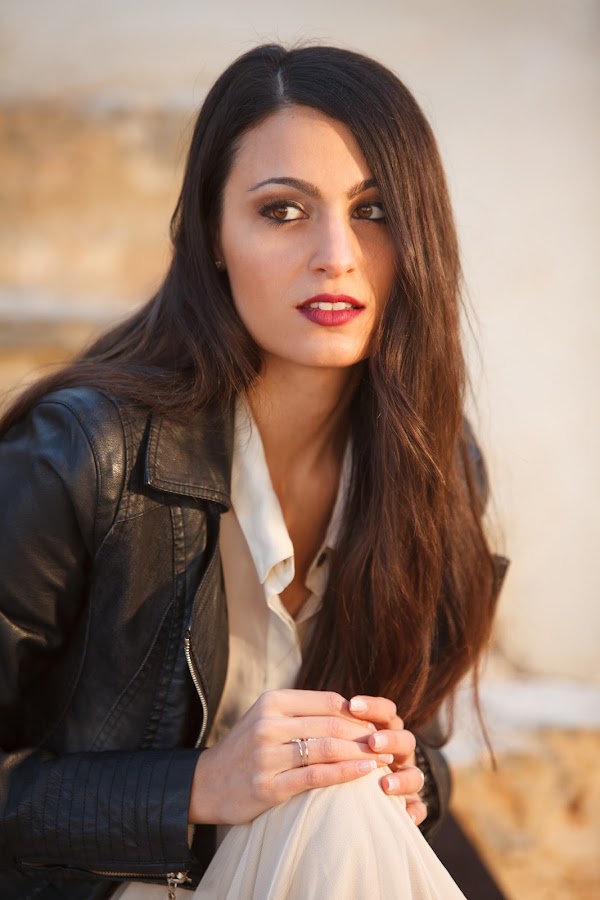 La he combinado con una fina blusa de la misma tonalidad, una biker rockera,