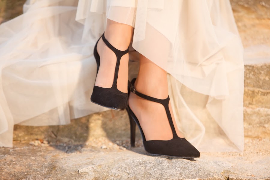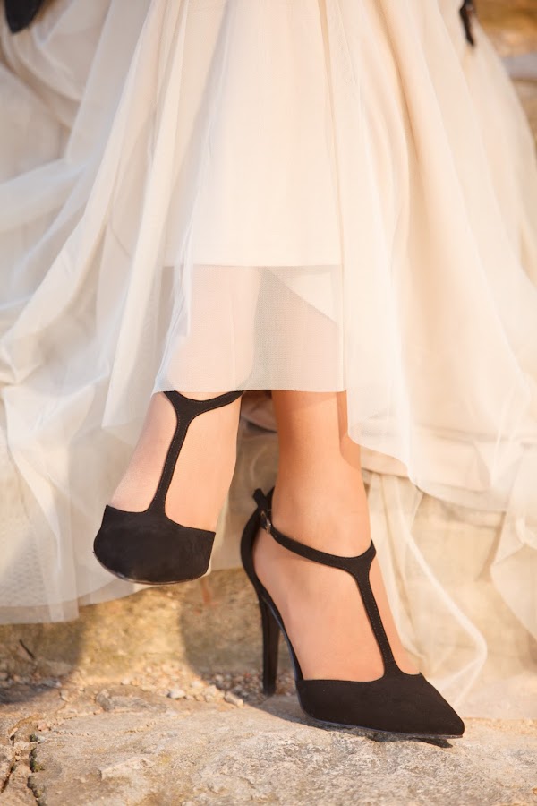 unos stilettos CAROLINA BOIX y un clutch negro.
