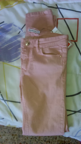 También he cogido estos dos pantalones, que me hacían falta. El primero es de tiro alto azul marino y sienta genial y el segundo es push up rosita, me encanta porque queda... uff!! Me han costado 9,99 cada uno.