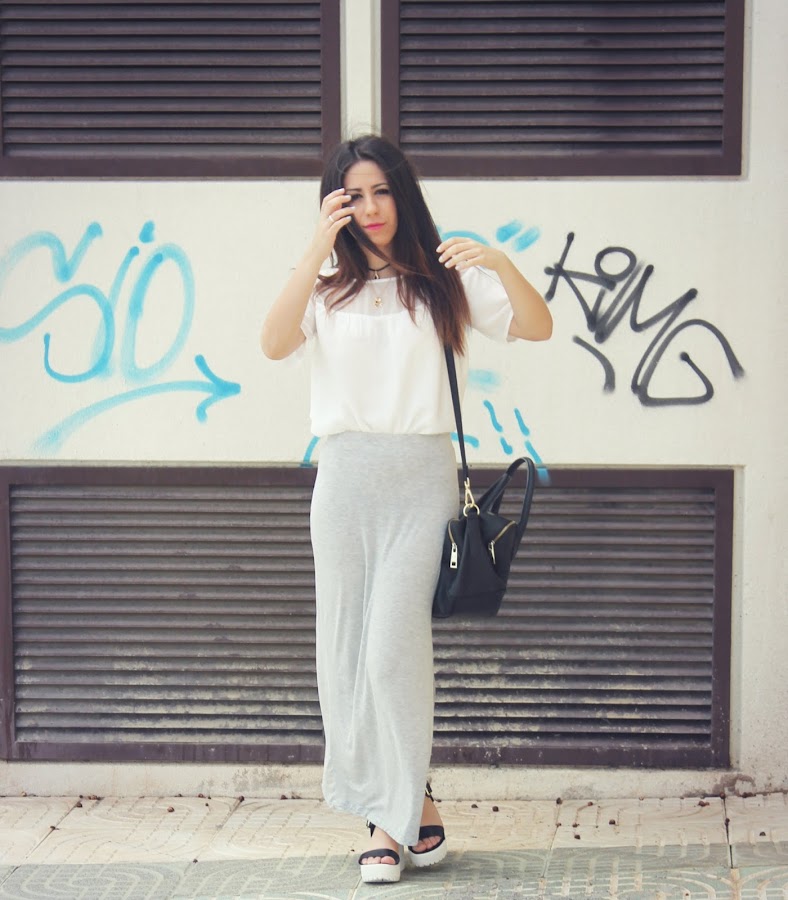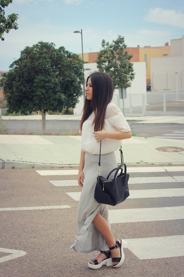 Hello beauties! How are you? I"m really happy... I"m already free. Bye exams, bye high school, bye stress!!! My summer starts now. I wanted to show you my new skirt from Bershka. It"s long and with a cut at side. I combined it with this t-shirt from Stradivarius and my new sandals metaline which I"m in love. You can watch the photos, I hope you like it! See you soon.