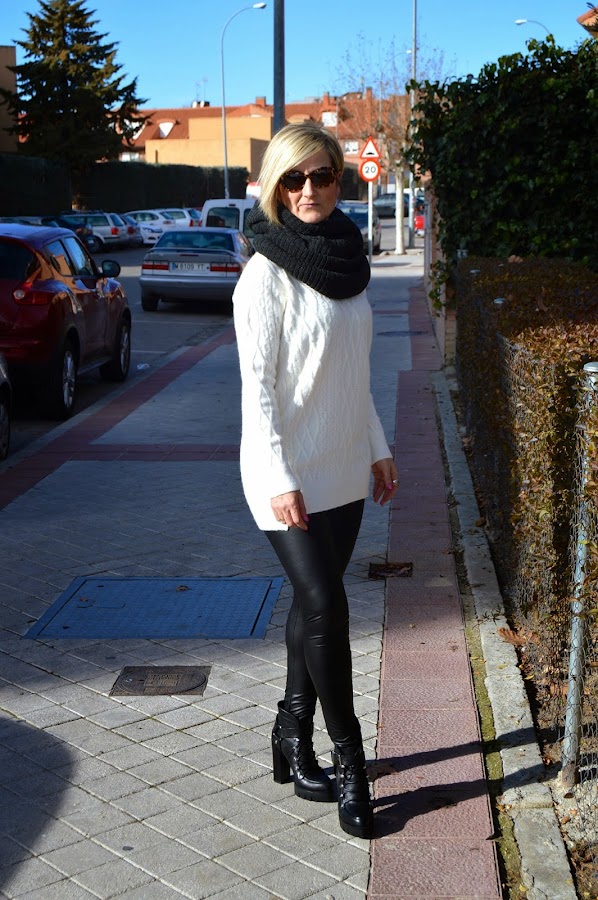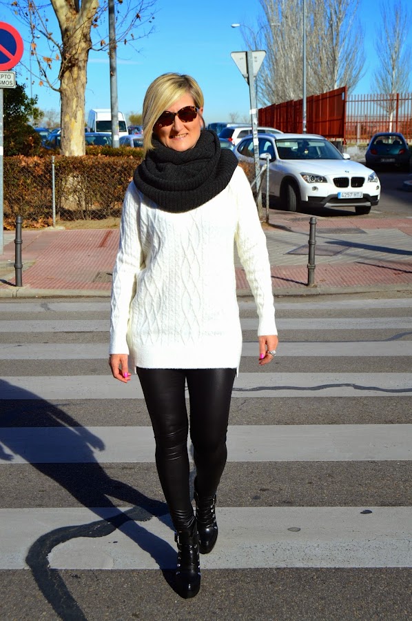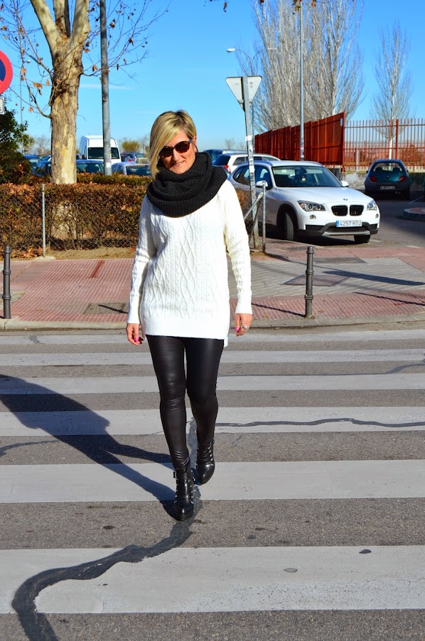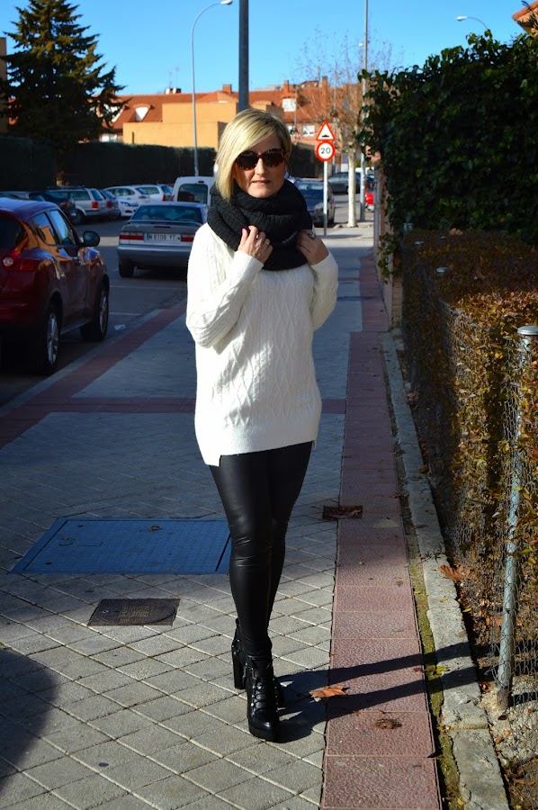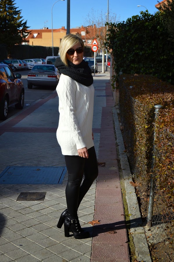 A por la última semana del mes!! Esto va rapídísimo, en nada tenemos aquí la primavera. Este solecito del fin de semana invitaba a quitarse el abrigo, aunque nada más que sea para hacerme la foto, claro! Os enseño mi nuevo jersey de Zara, comprado en rebajas, con el bajo asimétrico y muy calentito. Lo compré en otro color que ya veréis... El cuello es fabricación casera, ya sabéis que me encantan las bufandas y similares.