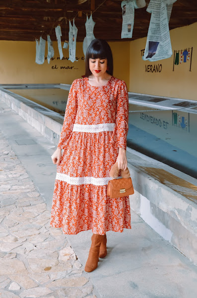 Es un vestido de entretiempo, ligero y muy alegre. Es de estilo boho, una tendencia que me encanta y con la que me siento muy identificada.