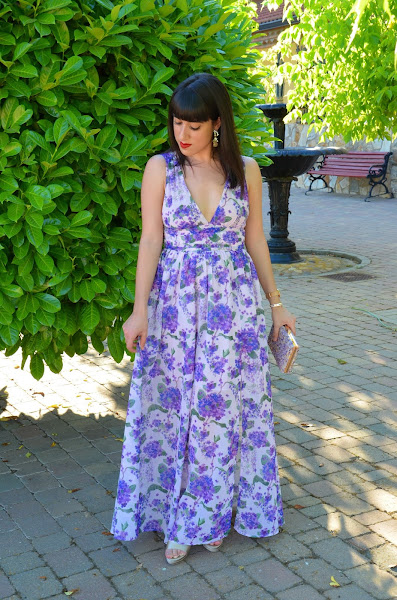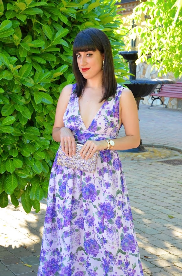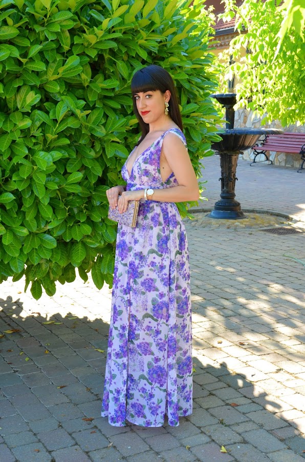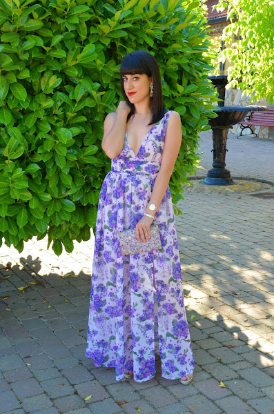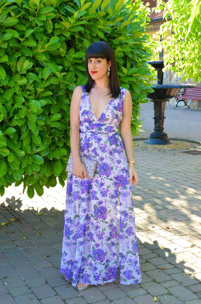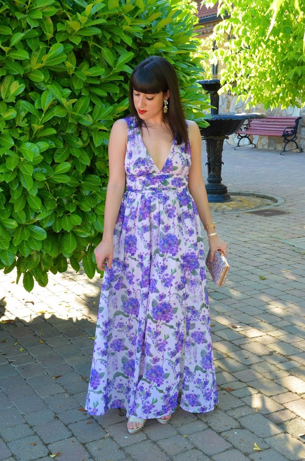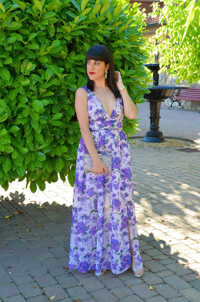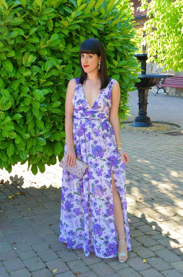 Tenía un montón de ganas de enseñaros el look de hoy. Este maxi vestido de flores moradas de Shein es una de mis prendas favoritas este verano. Es una maravilla tanto el diseño como la calidad. Queda impresionante y es una prenda genial para hacer un look de invitada elegante y económico ya que esta preciosidad solo cuesta 25€.