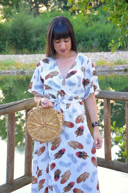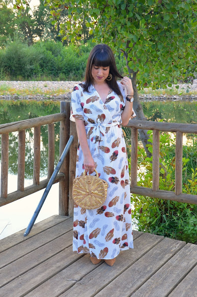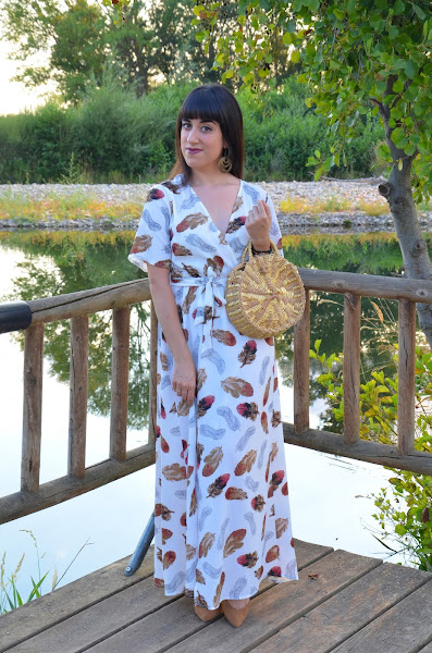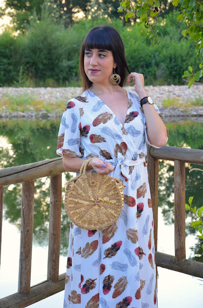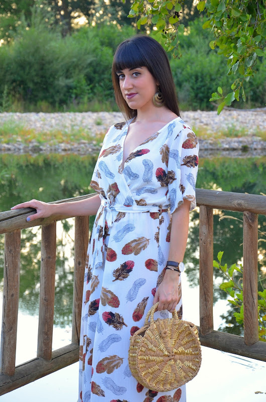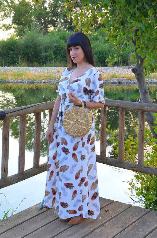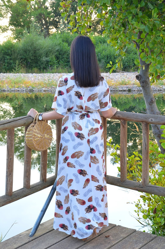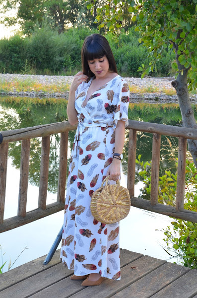 Precisamente en mi último pedido de Dresslily recibí este maxi vestido con print de plumas en tonos grises, marrones y rojizos y la verdad que me encanta mucho más en persona que en la web, las fotos no le hacen justicia.