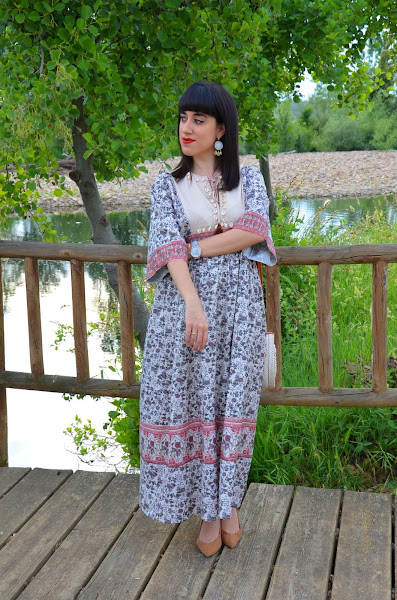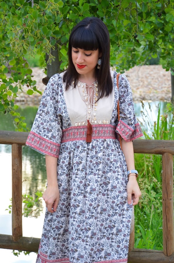 Hoy os dejo un nuevo post, que además tenía unas ganas de enseñároslo... el protagonista es este maxi vestido de Shein. Fue amor a primera vista, tanto por las caracolas, que es un detalle que a mi me encanta, como por el estampado y esas mangas acampanadas.