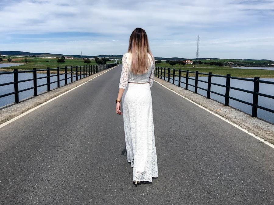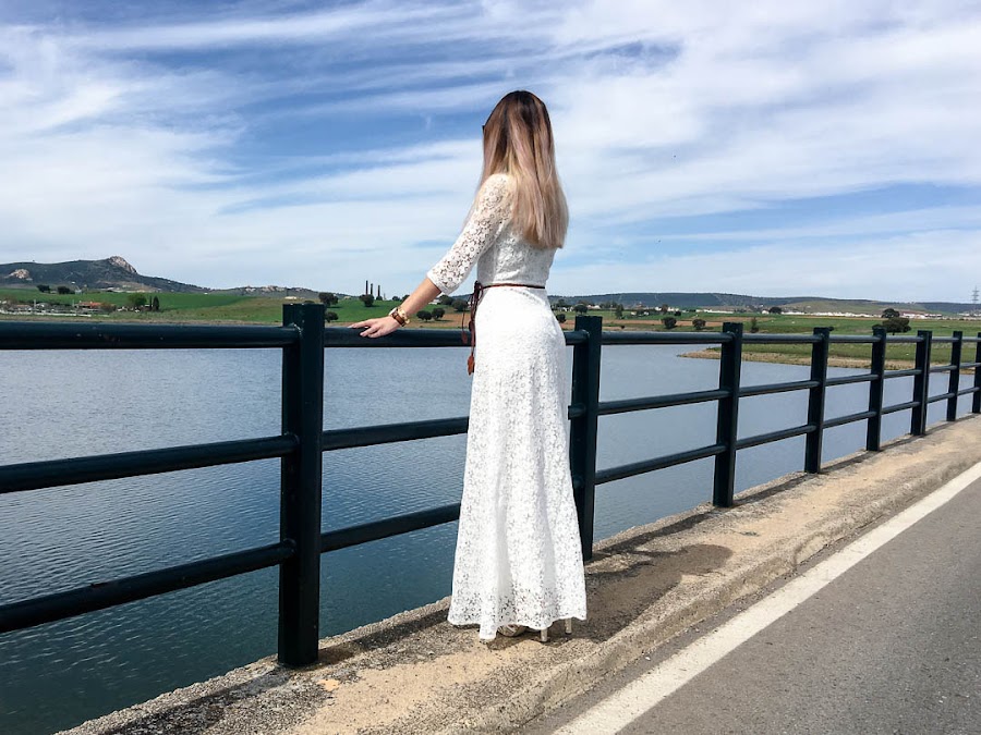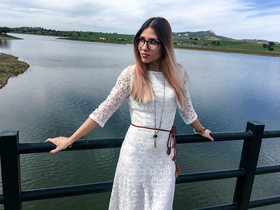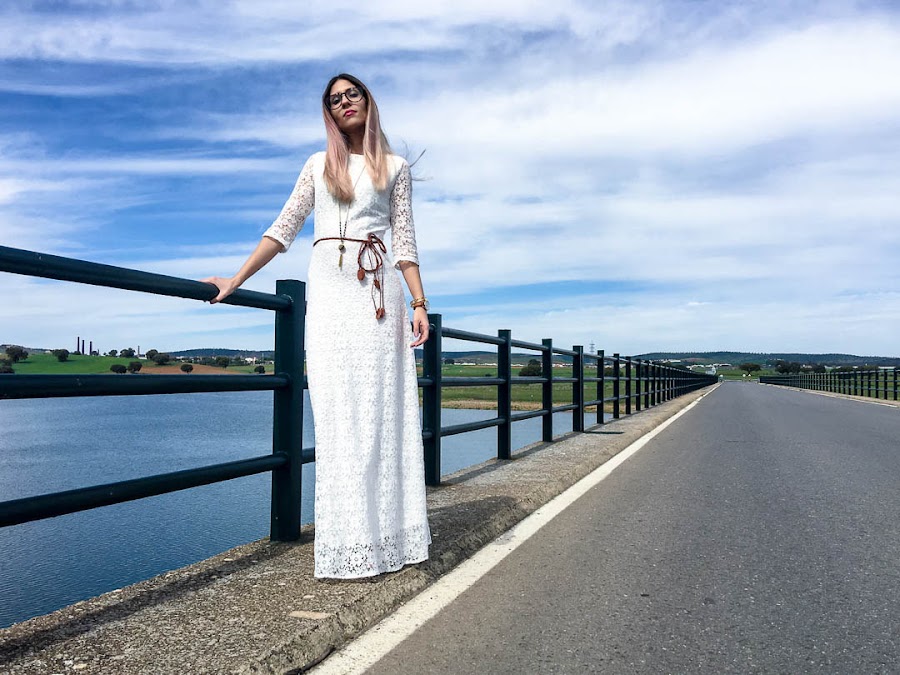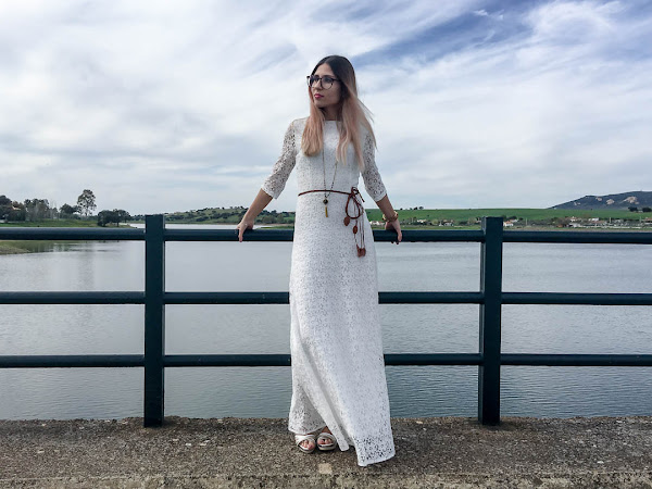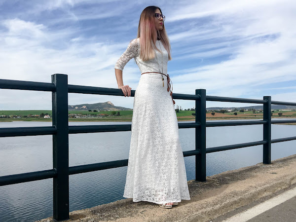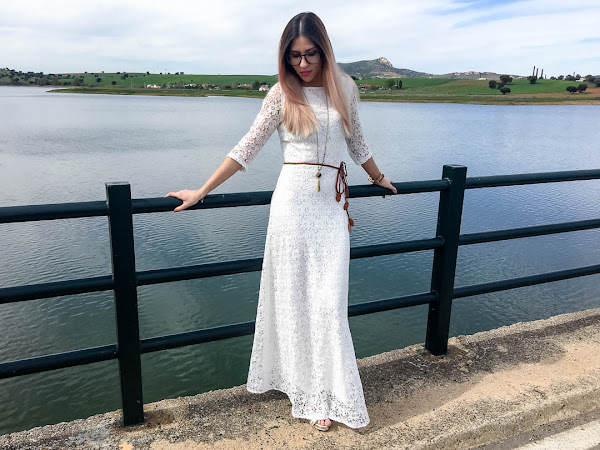 Pero antes de la sorpresa, vamos al look. Hoy un total white con un maxi dress blanco de encaje con cinturón marrón de LOOKBOOK STORE. Como me gusta vestir de blanco cuando viene el buen tiempo!! Podéis conseguir el vestido en el link de abajo o si lo preferís podéis comprarlo en Amazon haciendo clic en el boton "Buy at Amazon" dentro del mismo link.