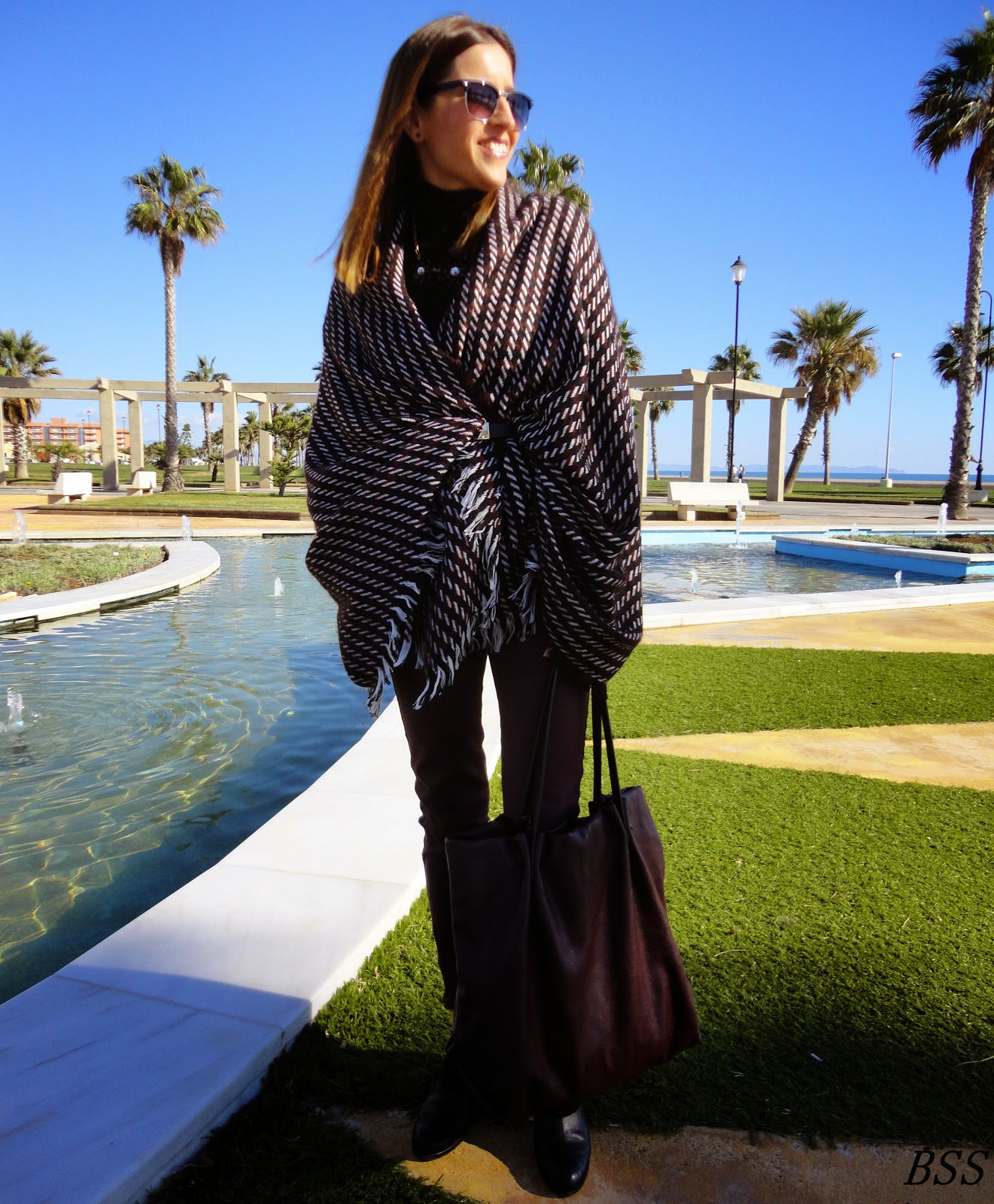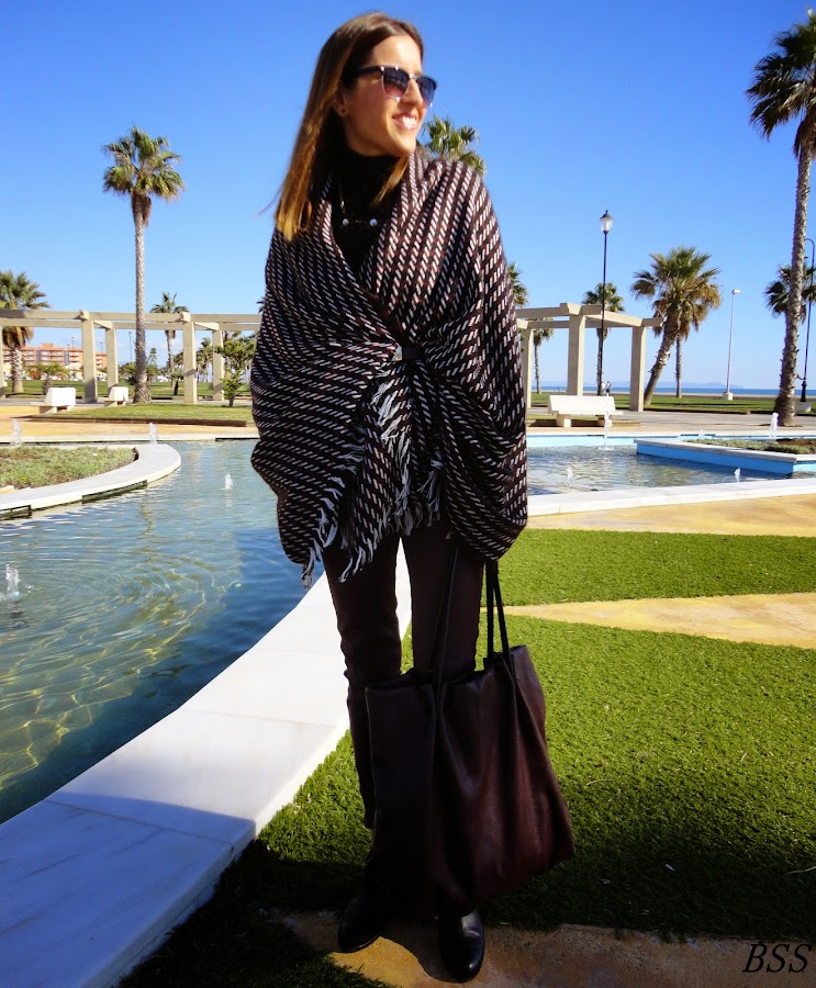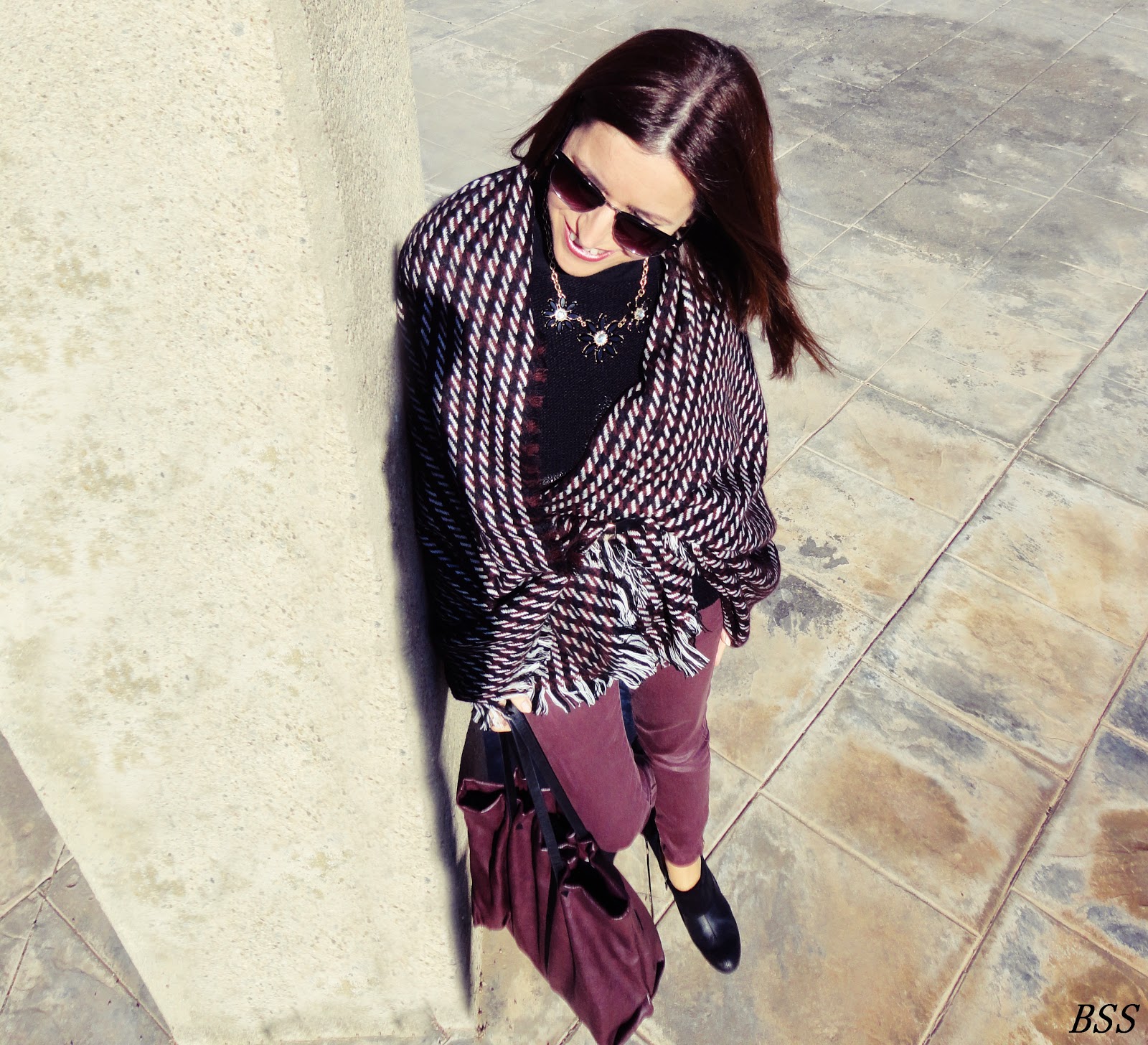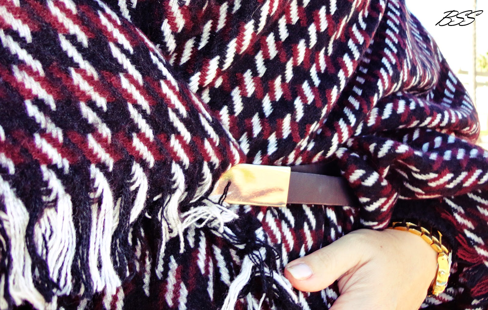 Ideas a modo de poncho o ceñida como en mi caso a la cintura, la maxi-bufanda sustituye al abrigo para crear un estilo trendy con un cierto aire vintage