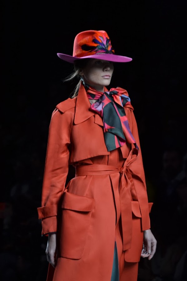 Winner of this edition, Juan Vidal made all the people fall in love with the designs that melted orange, red and purple tones. Big bows and fur details were the main characteristics of the first part of the collection, while triangle shaped necklines and side cuts do the rest in the last dresses.