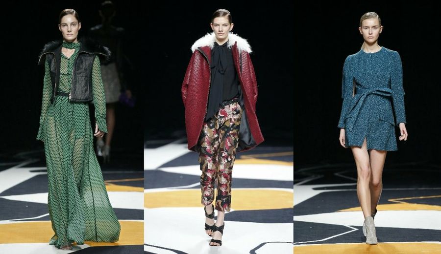 En esta ocasión nos deleitaron con tejidos como el jacquard, paño y lanas vírgenes a base de sutiles relieves; encajes geométricos, tachuelas y estampados para el día y una noche que se mostraba bajo un terciopelo devoré en azul intenso, rojo rubí y verde botella.