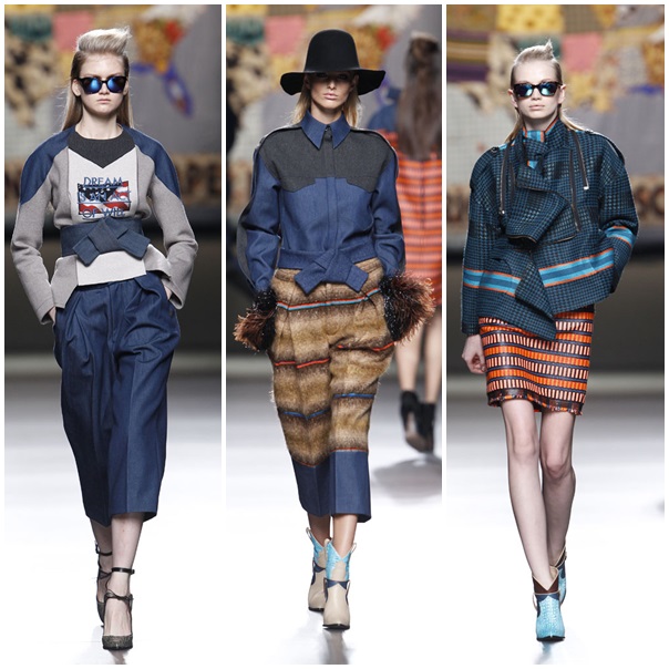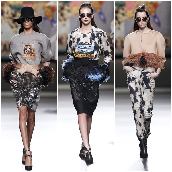 ANA LOCKING, en su colección "American Landscape" hace un recorrido por los lugares de América que ha visitado la diseñadora en el último período del año y por supuesto no faltó el denim y sudaderas con mensajes al más puro estilo americano. Destacar los detalles de plumas de aveztruz y el tweed de lúrex.