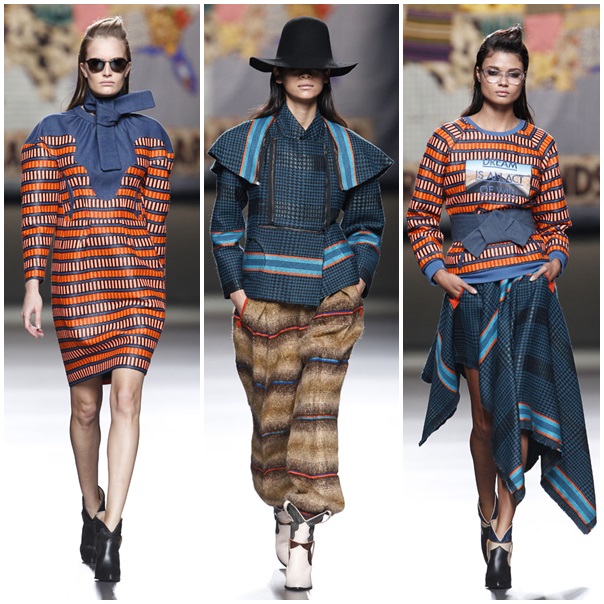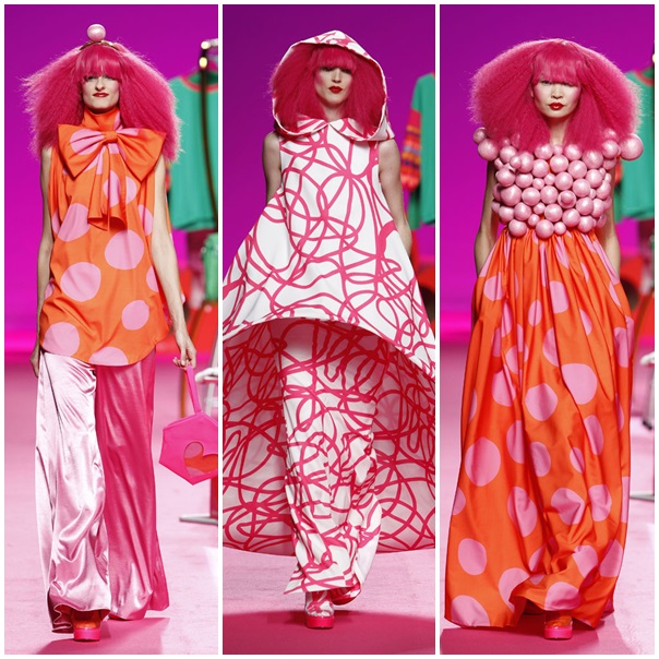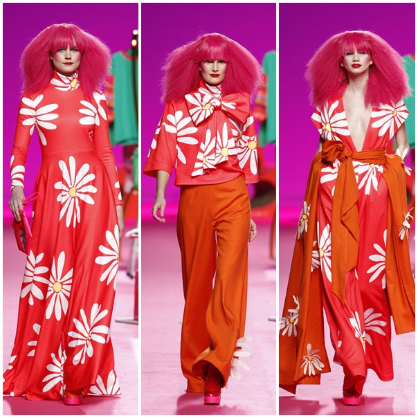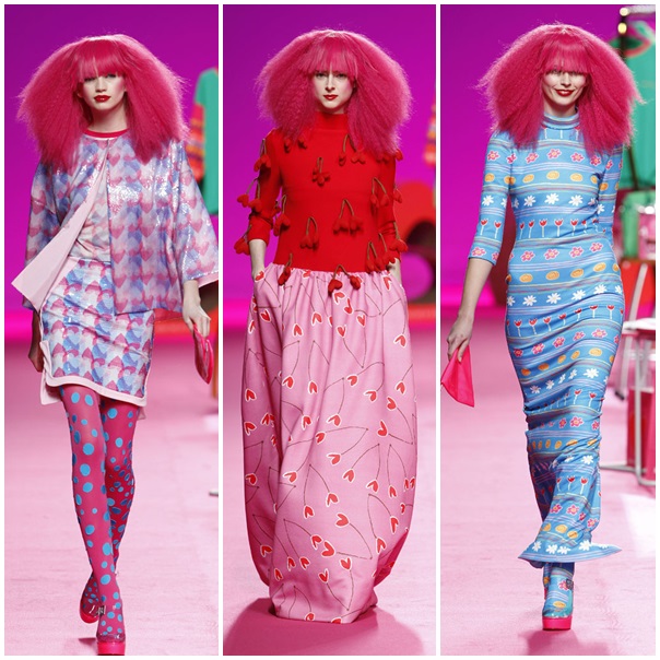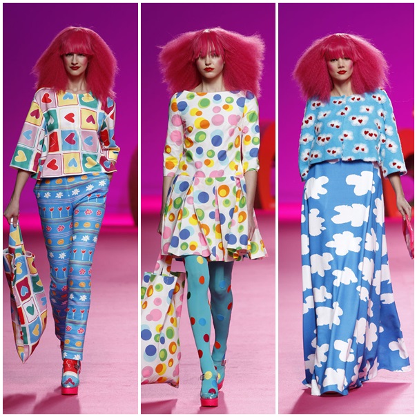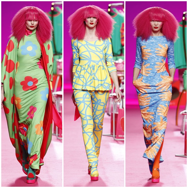 ÁGATHA RUIZ DE LA PRADA, en su colección predominaron como siempre los colores, con estampados psicodélicos muy de los años 70, lentejuelas, punto o neopreno como notas a destacar en un desfile cargado de optimismo y buen rollo.