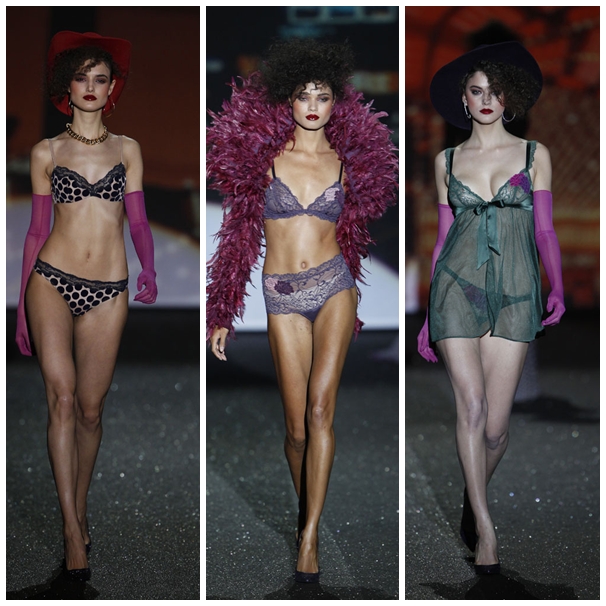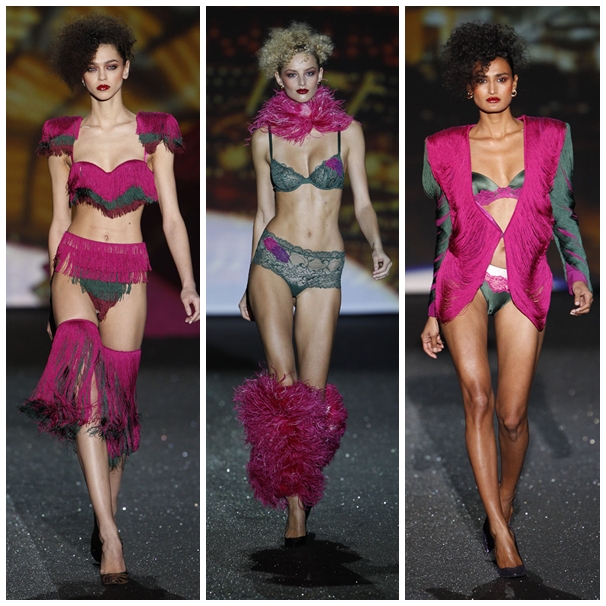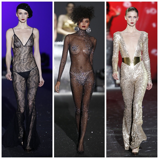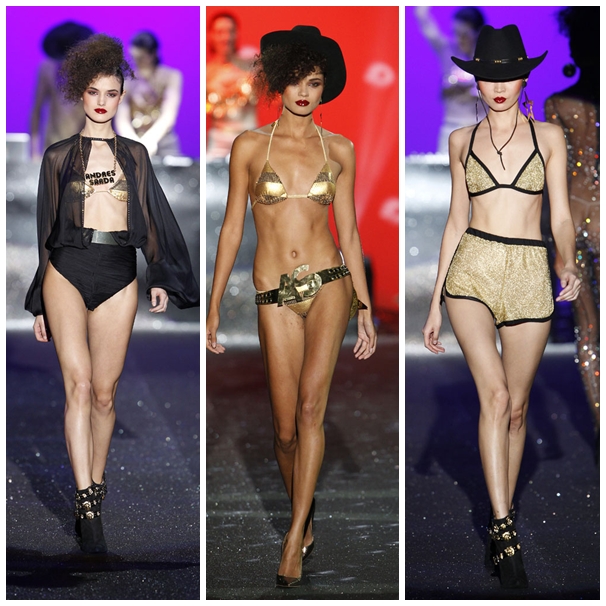 ANDRÉS SARDÁ, en su colección inspirada en las Vegas y en las noches de Studio 54 se pueden encontrar corsés de strass, flecos y dorados.