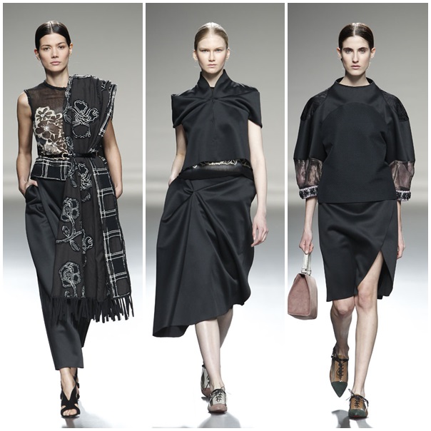 VICTORIO & LUCCHINO, presentaron una colección con el negro como color predominante, raya diplomática combinada con estampados florales, volúmenes, siluetas oversize, largos midi en faldas y vestidos caracterizan esta colección. Personalmente me gustó el detalle de las pashminas colocadas encima de un hombro.