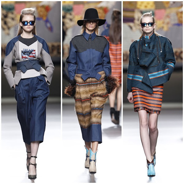 ANA LOCKING, en su colección "American Landscape" hace un recorrido por los lugares de América que ha visitado la diseñadora en el último período del año y por supuesto no faltó el denim y sudaderas con mensajes al más puro estilo americano. Destacar los detalles de plumas de aveztruz y el tweed de lúrex.