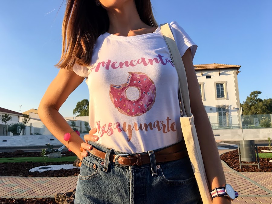 El look de hoy es uno de los looks básicos, pero que a la vez tienen mucho rollo. La camiseta es una monada, con un mensaje muy molón: "#mencanta besayunarte" y un donut estampado! Lo mejor es que en MENCANTA hay muchas camisetas para elegir, con mensajes súper positivos y originales. Además, podrás elegir entre manga corta o si la prefieres de tirantes! La he combinado con mis shorts Levis, mi bolsa Toti de FAMEST, y mis sandalias de plataforma.