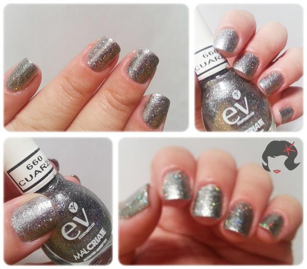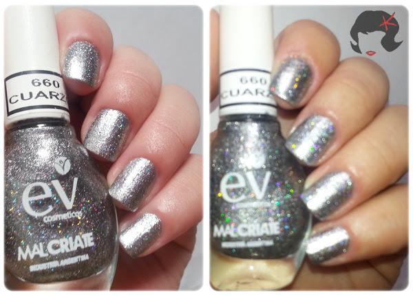 Pero bueno, olvidemos ese detalle y pasemos a Quarzo, es un gris plata muy lindo no solo porue no es el típico color plata sino porque está lleno de microglitters holos y a quien no le gusta tener algo holo en las uñas??