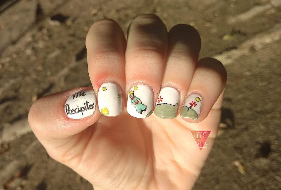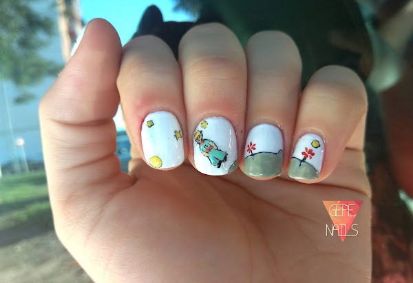 La manicura está inspirada en una foto que publicó Nuri, una amiga del grupo More than nails. Se trata del Principito, pero... ¡Con un toque distinto! xD