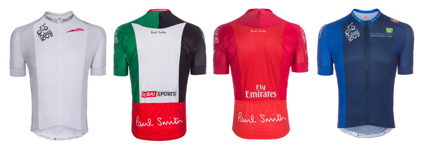 Esta semana también se ha presentado la camisetas oficiales para las clasificaciones del Dubai Tour realizadas por Paul Smith en colaboración con la firma italiana Castelli, de todos es sabida la influencia que tiene este deporte tiene para el diseñador ingles como podéis observar. Aunque las dos ruedas han sido inspiración para otros muchos diseñadores como pueden ser Louis Vuitton, Hermes, Chanel entre otros creando estas bicicletas que podéis ver aquí.