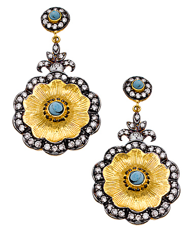 Yo tengo los pendientes Saucy Glossie-Camelia. En esta pieza de plata y oro conviven en armonía, docenas de circonitas en forma de dos flores con dos turquesas en el centro que me tienen loca!!