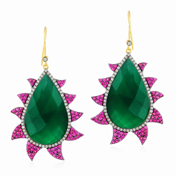 They pull in the edginess derived from signature sharp pave arches and creating striking color combination to complete the final piece.