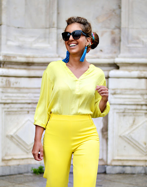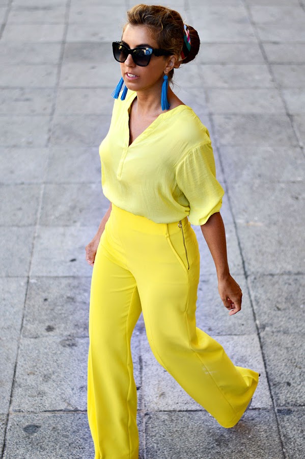 Blouse, pants & earrings: Sfera / Booties: Zara / Scarf: Bershka
