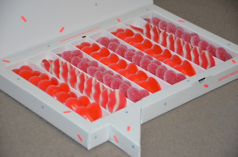 Se trata de una cajita de lo más cuqui llena de deliciosas gominolas y que a su vez contiene un mensaje dispuesto a endulzar el día a su destinatario.