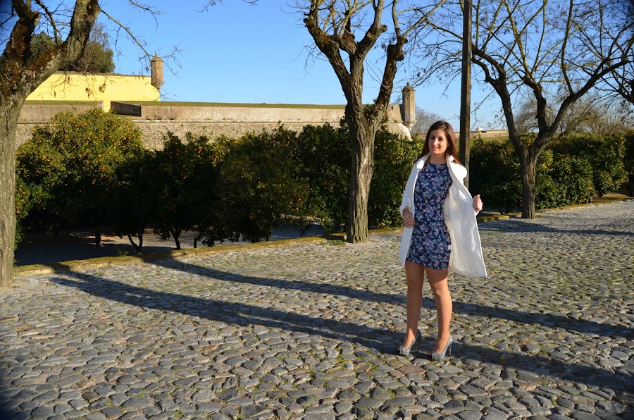 Elegí este vestido por sus alegres colores, y los combiné con mis zapatos plateados de Menbur y un abrigo blanco que tiene ya varias temporadas y me gusta tanto que no creo que me deshaga de el nunca.