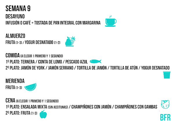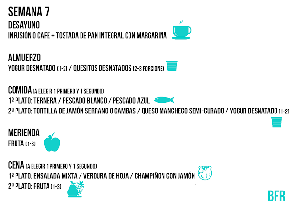 Como podéis ver, cada vez incluye más alimentos, como los lácteos, y los desayunos contienen hidratos, lo que los hace más llevaderos que al principio, así que no os desaniméis porque ya tenéis medio camino hecho y estoy segura de que la báscula lo está notando. ¡Ánimo!