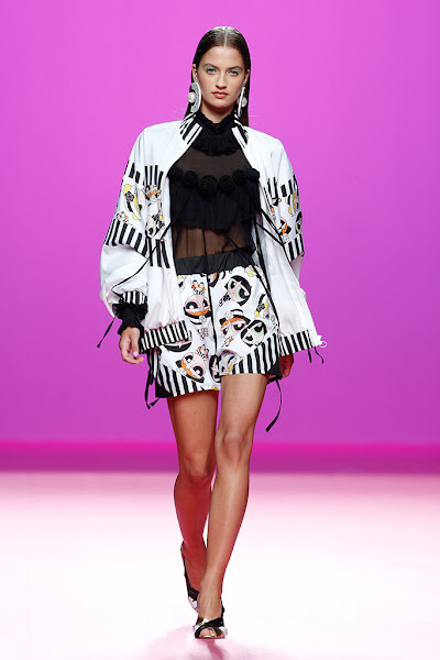 Otra firma que no puede faltar es la de Dolores Cortés. Ahora que estamos en verano es un momento perfecto para ver las tendencias del próximo. Se llevarán los naranjas, mostazas y sobre todo el binomio blanco y negro. Volantes, troquelados y desafíos arquitectónicos se ven en la colección, inspirada en Miami Beach, muy sexy y exótica.