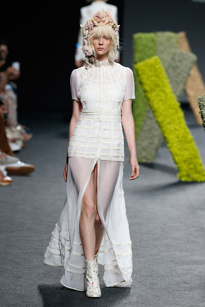 Teresa Helbig se inspira en la unión entre los jardines y la costura, comenta que tanto una cosa como la otra, cuentan una historia que está en constante transformación. La diseñadora, con gran éxito internacional que sube como la espuma, nos deleita con una colección de tejidos entramados, flores, tonos tierra y pasteles, vestidos y prendas muy estructuradas que no hacen más que confirmar la gran evolución de la firma.