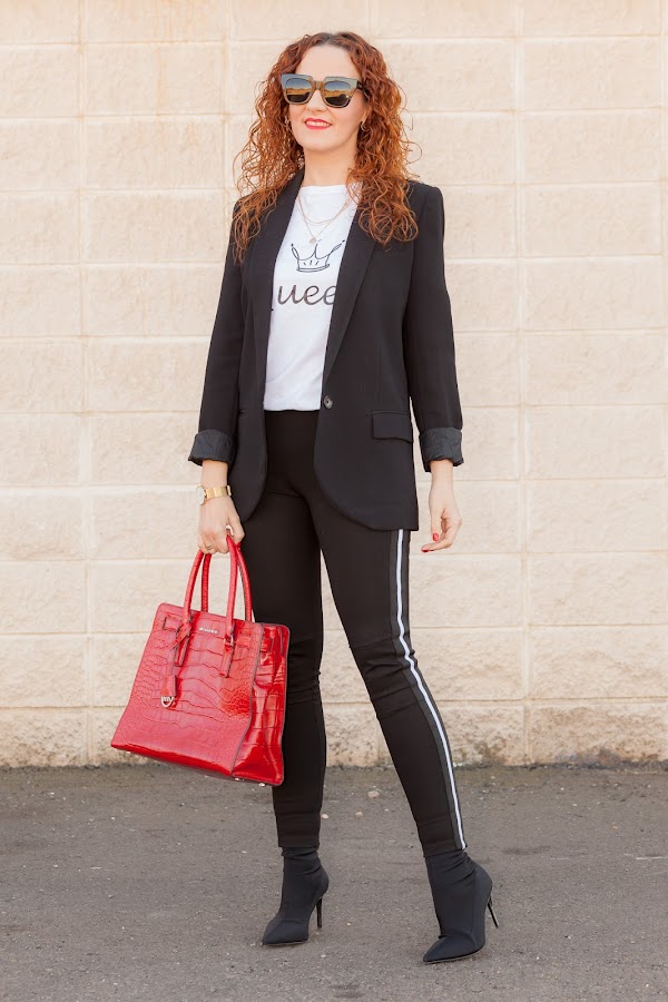He añadido mi querido bolso negro y un moño para darle mas vidilla al look.
