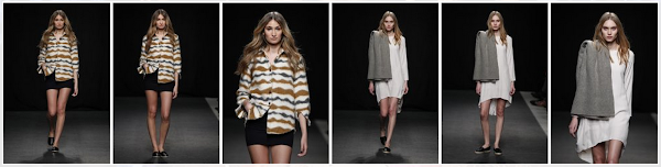 Poe, presentó una colección cómoda con gran diversidad de tejidos: lanas moher, algodones, sedas , nobuk, tejidos técnicos impermeables y alpacas en pantalones anchos, vestidos y faldas con largos midi, abrigos y chaquetas con mangas caídas o japonesas, sobrecamisas, monos para la lluvia?